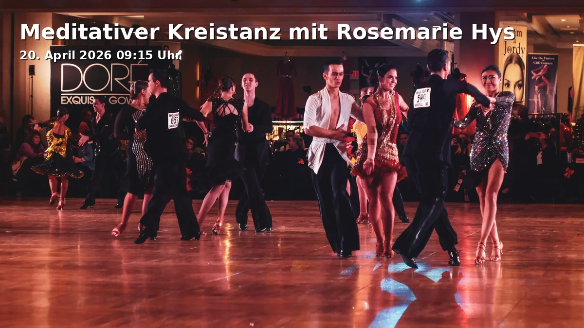 At the Maria-Seltmann-Haus in Weiden, the meditative circle dance opens a space for movement, music, and inner balance on April 20, 2026. Under the guidance of Rosemarie Hys, an event experience is created that engages the body, coordination, and the mood of the audience. The course is aimed at people with basic dance knowledge and newcomers who wish to explore in a mindful, communal atmosphere.