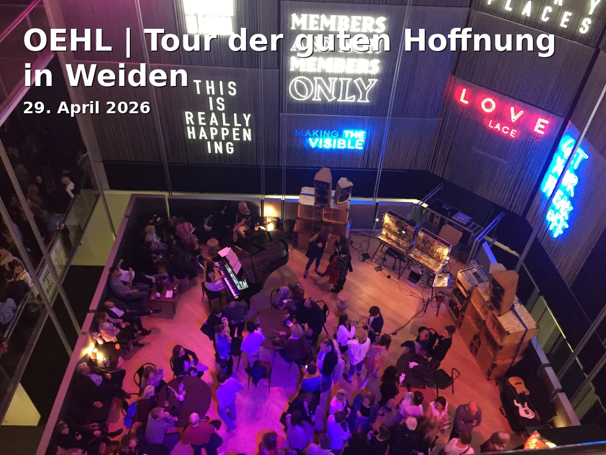 Freuen Sie sich auf einen besonderen Abend mit der Indie-Pop-Band OEHL. Am 29. April 2026 erwartet Sie um 20:00 Uhr ein unvergessliches Konzert in der Sünde – Ort für Kulturgeschehen in Weiden. Die Band ist bekannt für ihre einfühlsamen Melodien und poetischen Texte und zieht Fans aus dem gesamten deutschsprachigen Raum an.