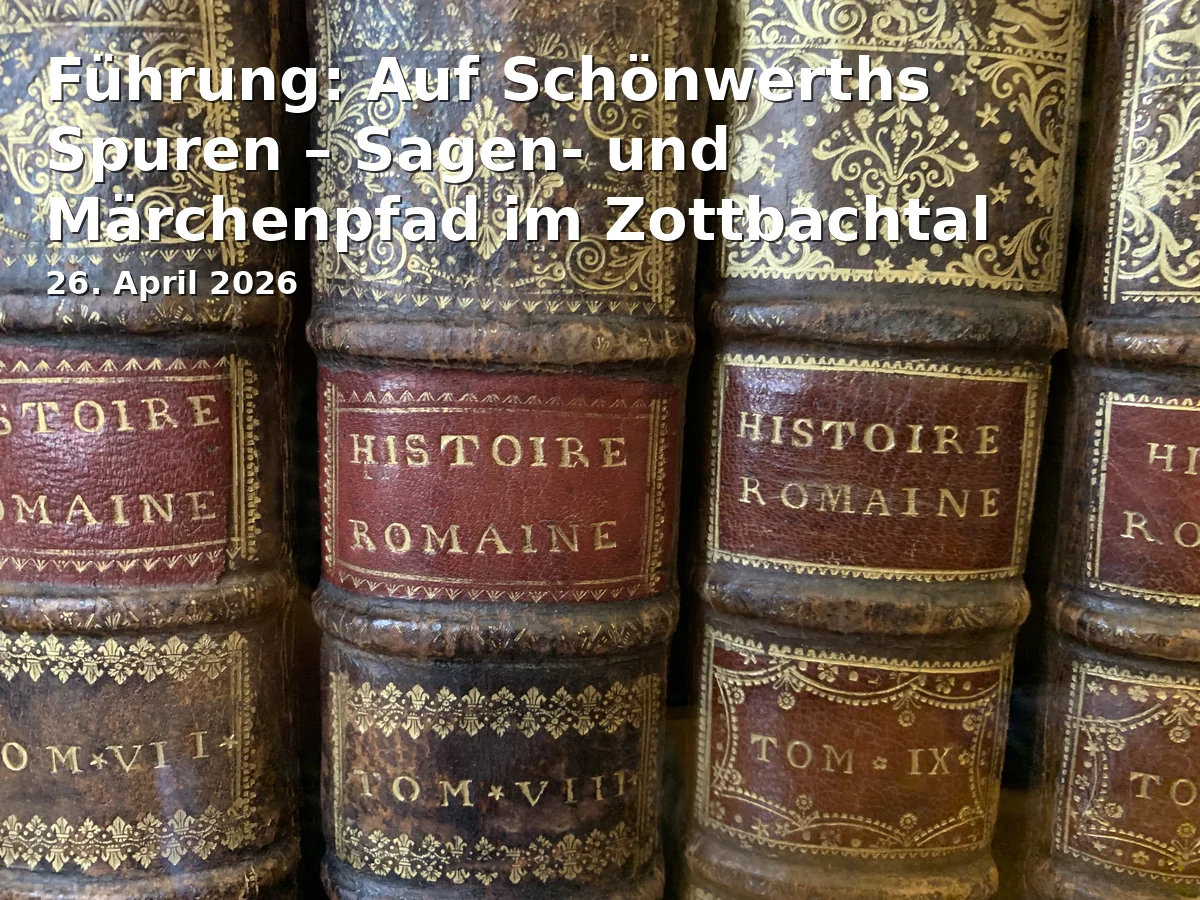 Erleben Sie eine faszinierende Reise in die Welt der Sagen und Märchen im herrlichen Zottbachtal, inspiriert von den Erzählungen Franz Xaver von Schönwerths. Bei dieser Führung werden Sie in eine Welt voller geheimnisvoller Wesen und alter Legenden entführt, die tief in der oberpfälzischen Tradition verwurzelt sind. Treffpunkt dieser kulturellen Entdeckungsreise ist das Maria-Seltmann-Haus in Weiden, ein Ort voller Geschichte und Charme, von dem aus die Teilnehmer zu einem unvergesslichen Abenteuer aufbrechen.